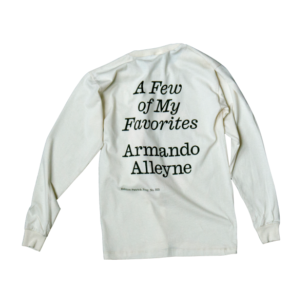 The cover is a collaged portrait of Biggie Smalls, made by Alleyne shortly after Smalls died in 1997. It’s now a t-shirt. All proceeds go to Armando and his continued art-making.
